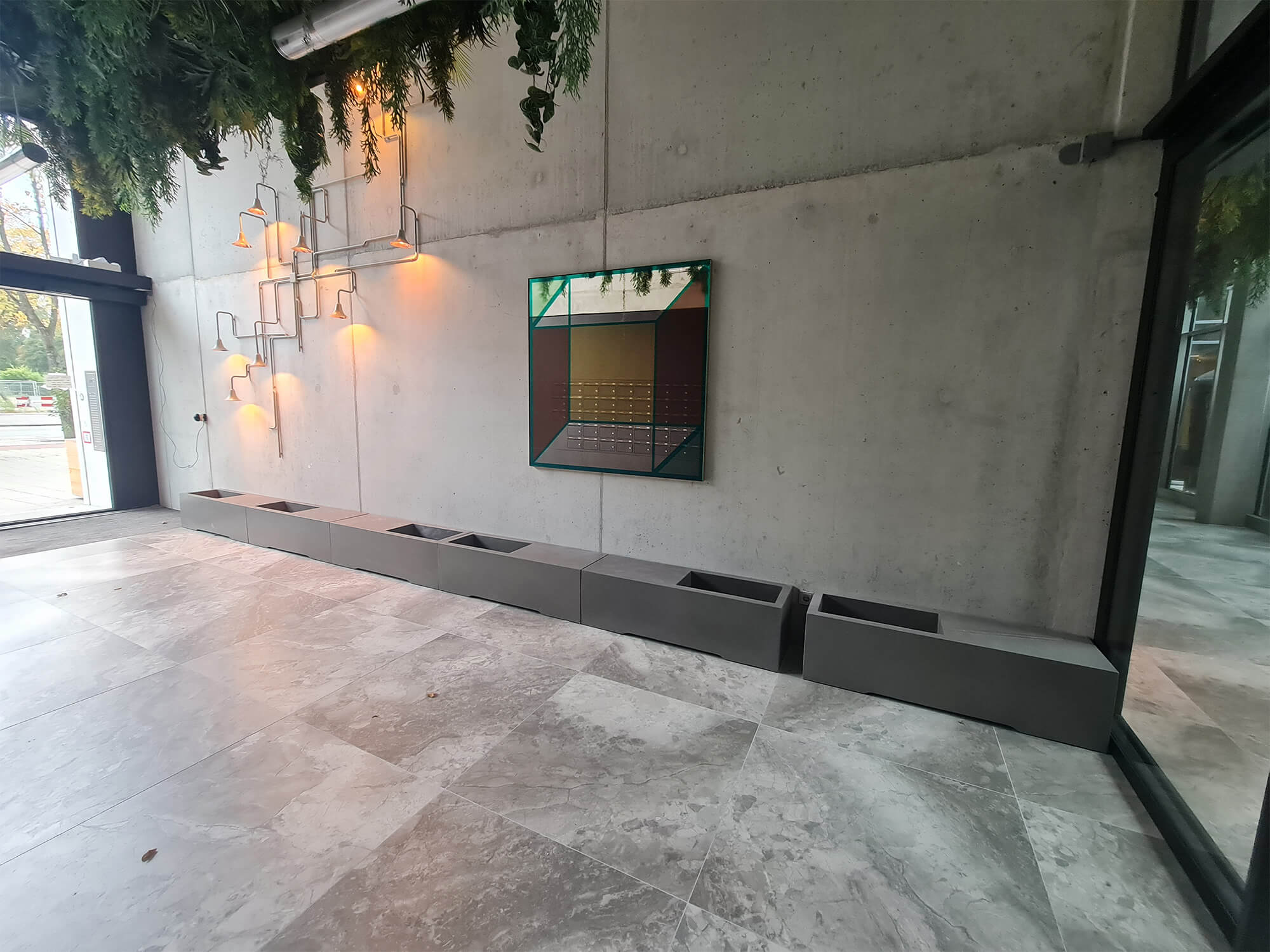 We zijn blij met het eindresultaat en hangt prachtig in de aankomsthal van het luxe appartementencomplex “New-West Amsterdam”. Het voegt een vleugje elegantie en stijl toe aan de ruimte, met zowel een moderne als tijdloze uitstraling.