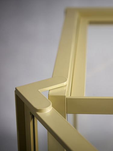 Description: The Finn cabinet was designed by Piet Boon and gives an industrial look to every interior. This luxury box is available in multiple colors and can be used anywhere. The transparent appearance is assisted by the use of 5mm hardened clear glass which is SA ground. The edges disappear in the metal work, which makes the edge finishing PP unnecessary for this furniture. By applying safety glass, this cabinet can handle a lot of weight and can be used in several places in the house.