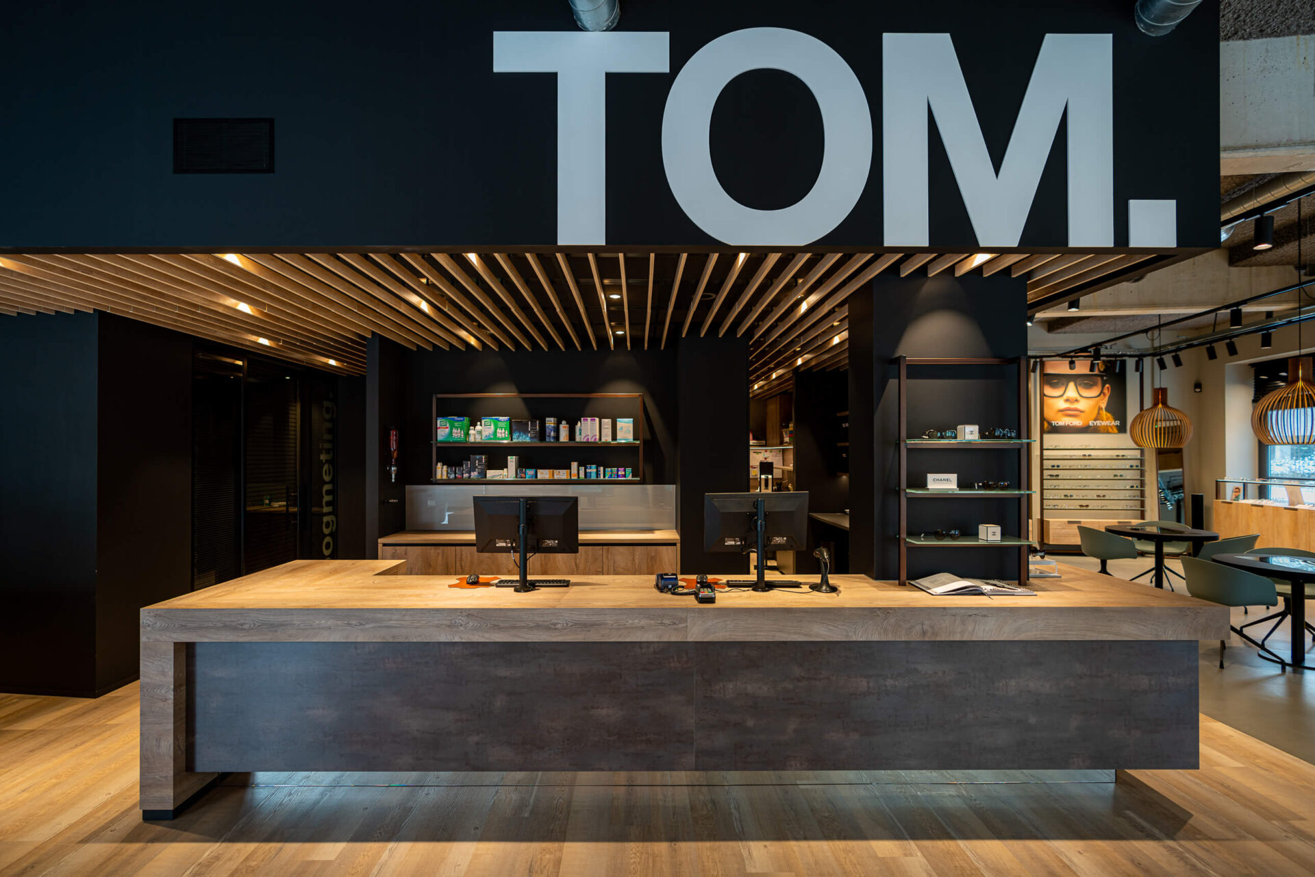 Optiekzaak Tom. In opdracht van Hubbers interieurmakers hebben we scheidingswanden van hardglas met print en etsglas voor in de stellingen mogen leveren. Het glas past perfect in het ontwerp, waardoor de klantbeleving in de optiekzaak optimaal is.
