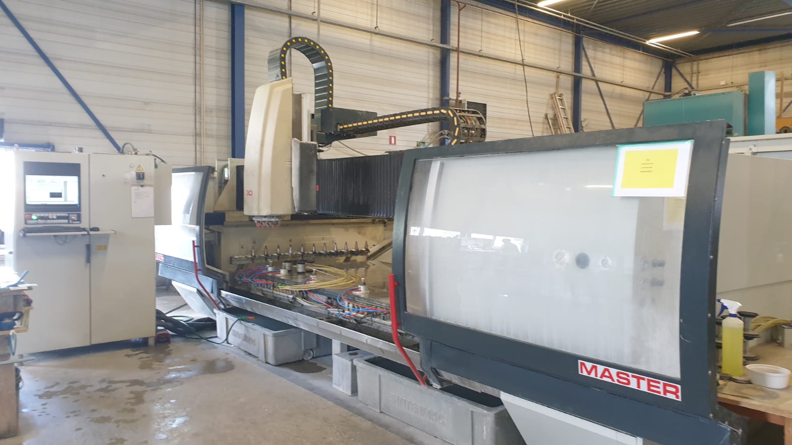 Een klein kijkje in de keuken. Hier zie je een volledig automatische machine, de CNC. Onze Serginho demonstreert wat wij een ‘Mickey Mouse-uitsparing’ noemen, gemaakt op de CNC. Scharnieruitsparingen, ronde spiegels, gaten boren en alle andere uitsparingen zijn geen probleem voor dit apparaat.