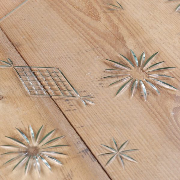 Het sterren slijpen in glas kan via de volgende twee manieren, namelijk handmatig of machinaal. Zoals hierboven al even benoemd kan er van vrijwel elk mogelijk motief een decoratie in het glas worden geslepen. Naast sterren slijpen kunt u bijvoorbeeld ook denken aan rillen, rondjes, takken, bloemen en nog veel meer. Deze decoraties kunnen zowel worden geslepen in glas als in spiegels. Op de foto hiernaast ziet u een voorbeeld van het sterren slijpen in glas. Heeft u een andere wens voor uw glas op maat? Op aanvraag kan naar wens een geslepen product gemaakt worden.
